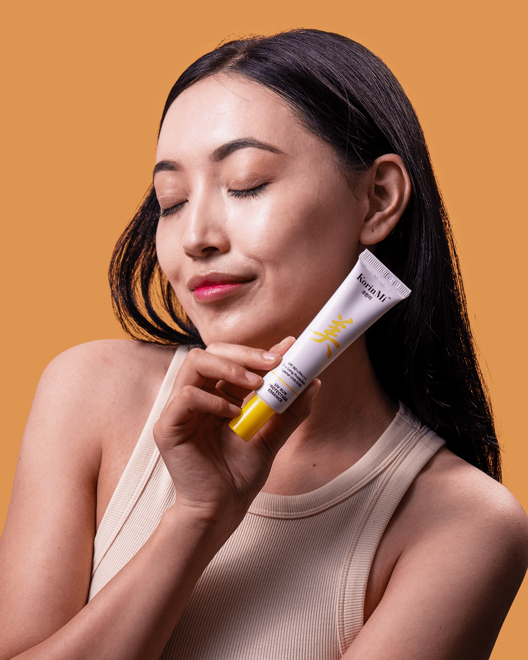 At the end of your skincare routine, apply a coin-sized amount of UV Sun Protection Essence on your face and neck.
